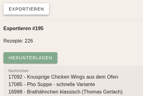 ich versuche gerade, meine Datenbank in z. B. das Tandoor-Format zu exportieren (alle Rezepte).